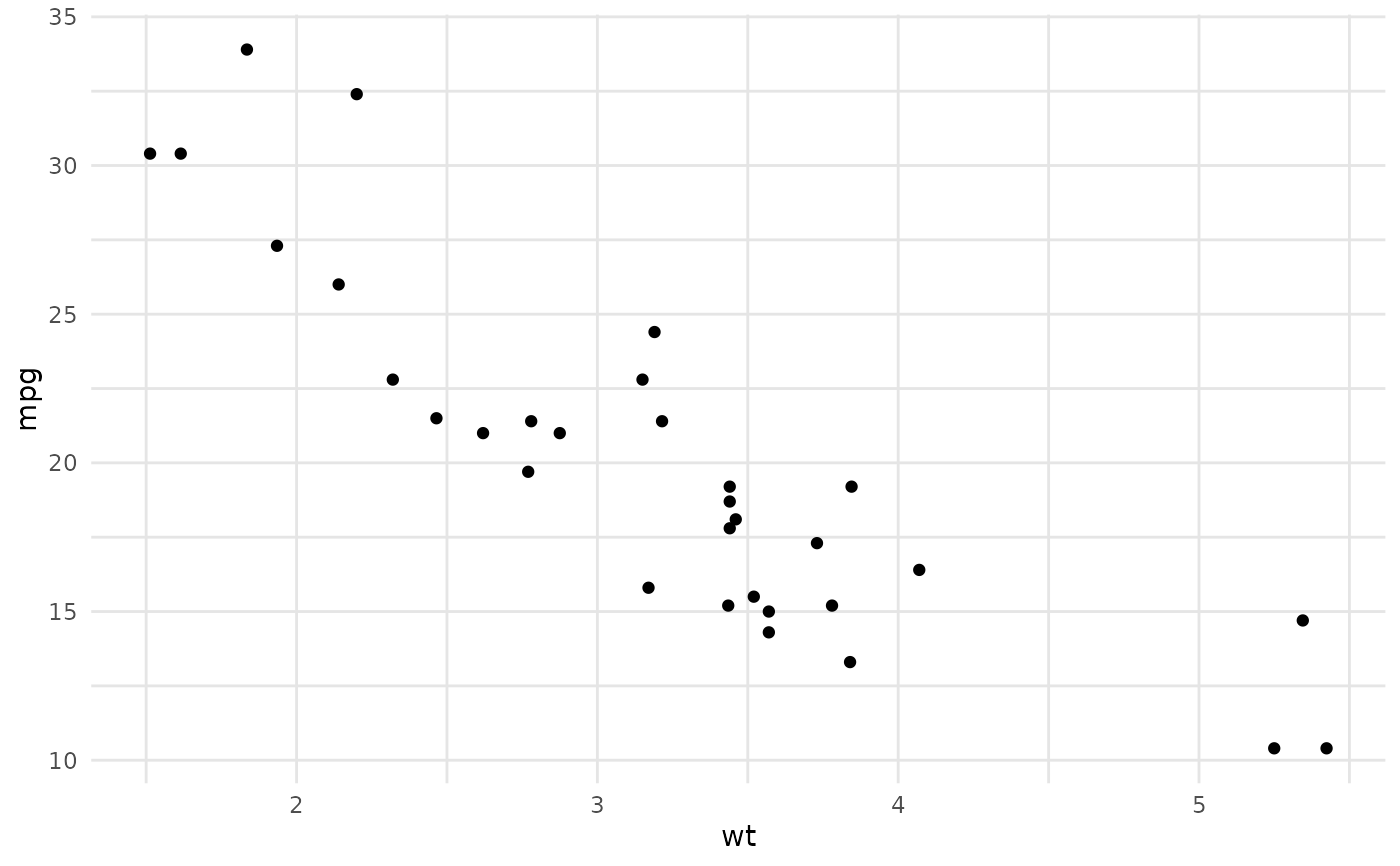 ggplot(mtcars, aes(x = wt, y = mpg)) +